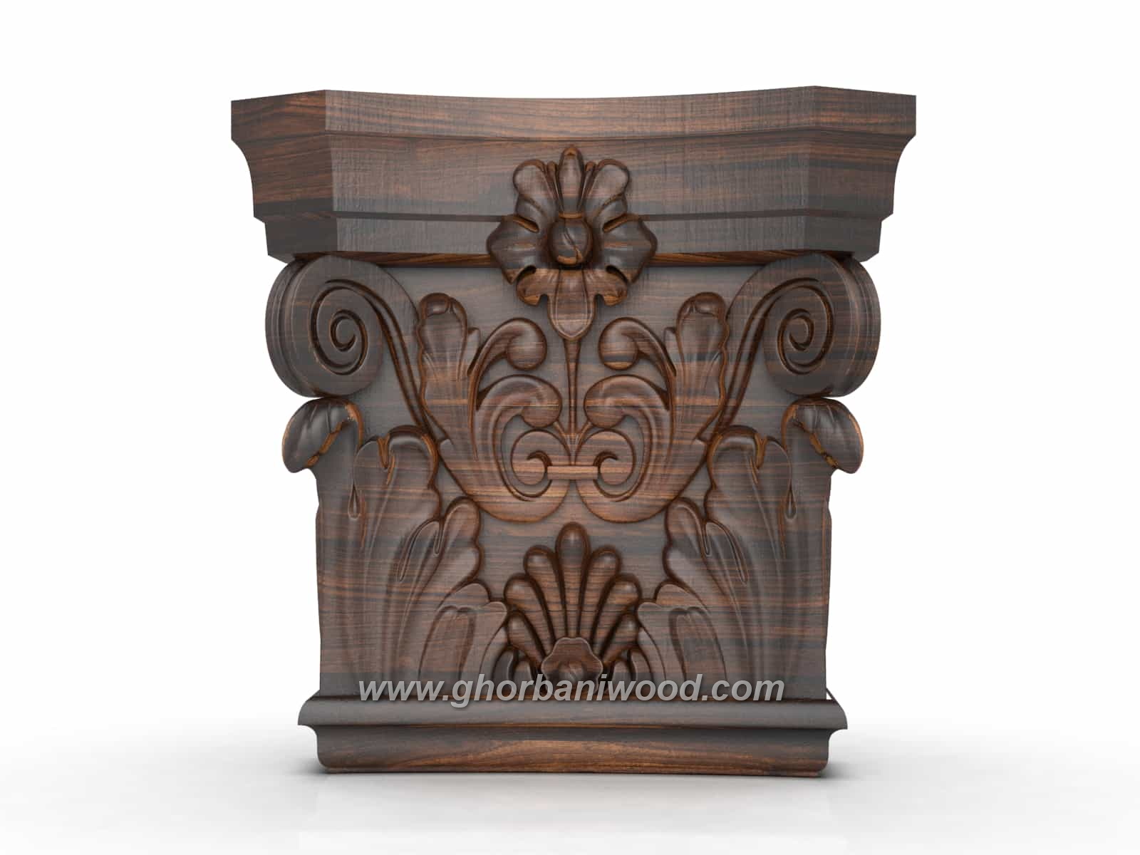 نوع جنس  :  سرستون چوب راش خارجی با کیفیت میباشد ، که در مجموعه منبت چوب قربانی توسط کادری مجرب  تولید میگردد .