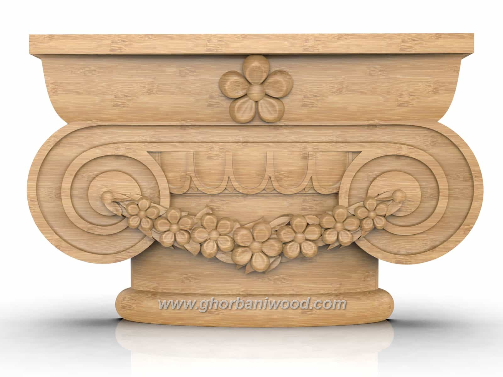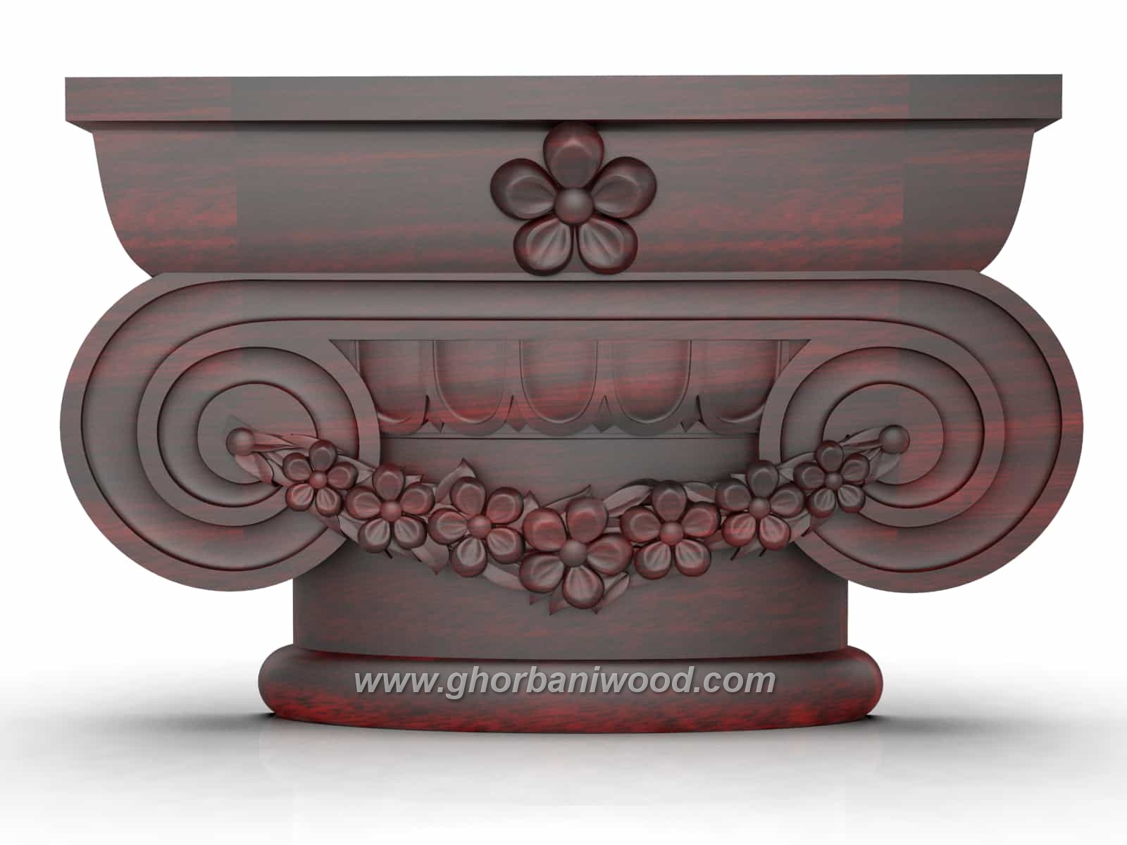 نوع جنس : سرستون چوب راش خارجی با کیفیت میباشد ، که در مجموعه منبت چوب قربانی توسط کادری مجرب تولید میگردد .